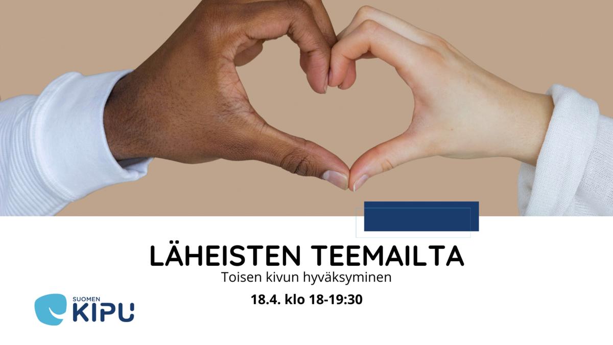 Nämä ovat kysymyksiä, joita pohditaan läheisten omassa teemaillassa 18. huhtikuuta klo 18-19:30. Teemailta alkaa lyhyellä alustusosiolla Suomen Kivun työntekijän Emmi Vainion pitämänä. Alustuksen jälkeen siirrytään keskustelemaan aiheesta ja loppuaika onkin varattu vertaistuelliselle keskustelulle. Keskusteluun voit osallistua mikrofonilla tai chatissa kirjoittaen.