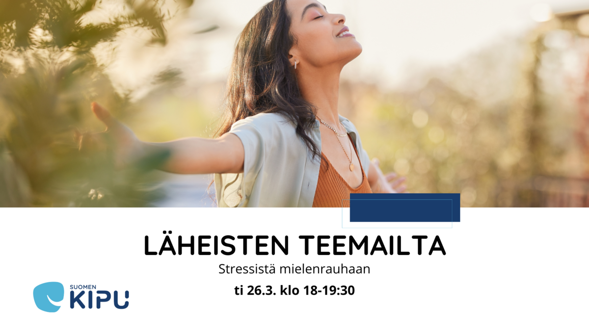 Koetko stressiä, levottomuutta tai olet muuten haastavassa elämäntilanteessa? Kaipaatko keinoja rentoutua ja löytää mielenrauhaa arjen haasteisiin? Tervetuloa mukaan kipuoireisten läheisten keskustelevaan teemailtaan, jossa käsitellään stressiä, stressinhallintaa ja itsemyötätuntoa!