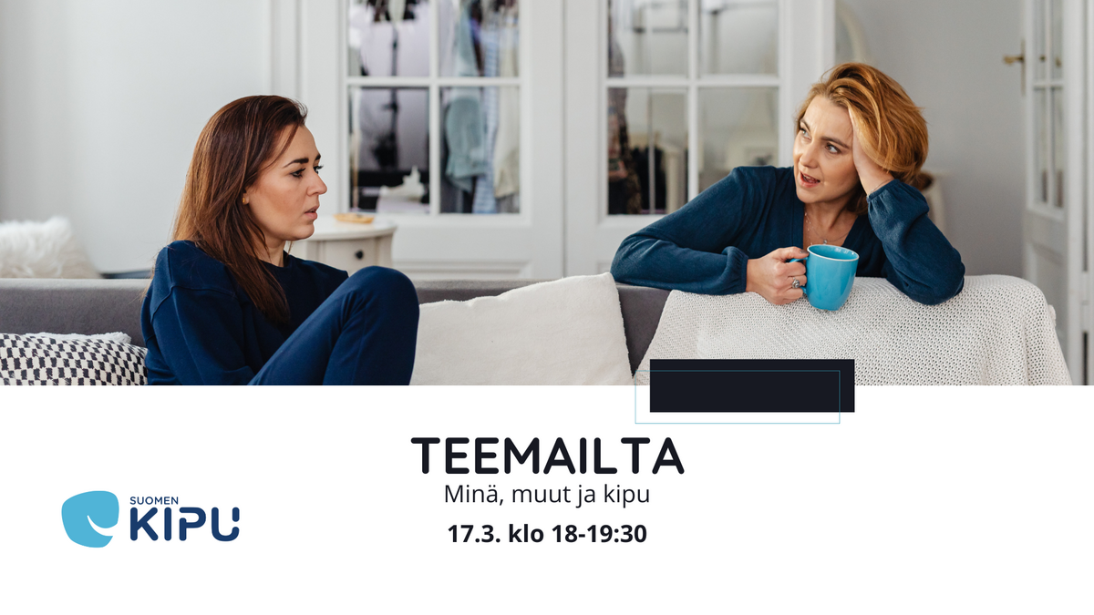 Tässä teemaillassa pohdimme yhdessä, millä tavalla pitkittynyt kipu vaikuttaa vuorovaikutukseen, läheisiin ihmissuhteisiin ja sosiaaliseen elämään. Kipu voi monen muun asian ohella vaikuttaa myös sosiaalisiin suhteisiin ja erityisesti lähipiiriin. Kivun keskellä voi tuntua siltä, että muut eivät ymmärrä kipua, eikä sitä aina osaa itse sanoittaakaan.